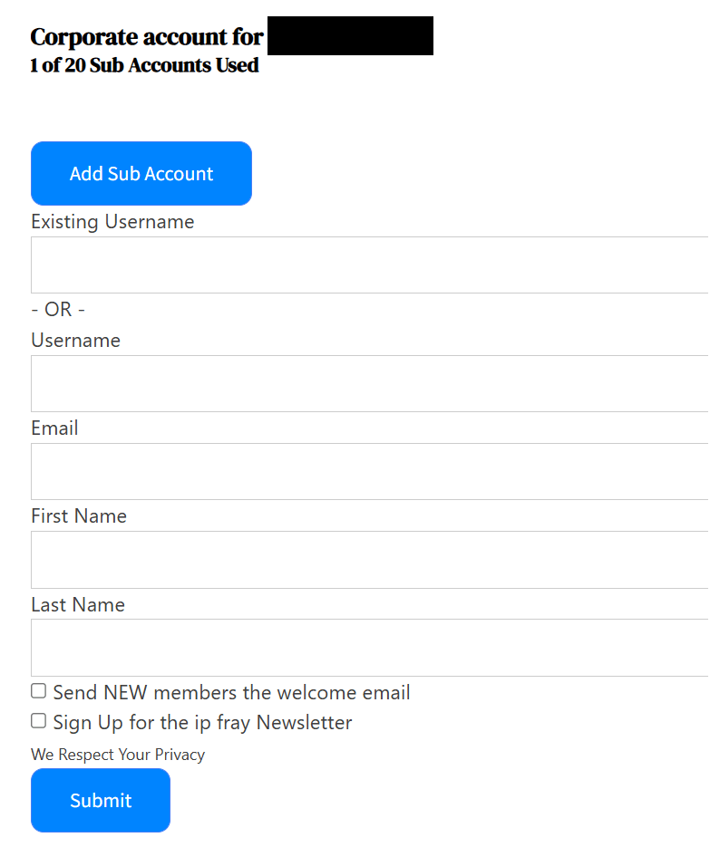we send you a corporate account registration link. If you click on that one, you can fill out and submit a form that looks like this: